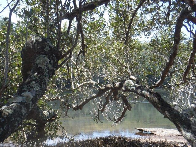 The parks comprising the State Conservation Area ( including Queens Lake Nature Reserve ) are underlain by a range of rock formations ( the little headlands on this side of the lake are quite rocky ) of sedimentary, igneous & metamorphic origin ( reminds of geography lessons at school !! ), some up to 350 million years old. They are substantially different from the relatively recent sand environments protected by most other coastal parks in the region.. The southern end of the Nature Reserve drains into Waterloo, Bobs & Herons Creeks into Queens Lake which is part of the Camden Haven estuary. The northern end drains into Cowarra Creek which in turn flows into Lake Cathie. The Nature reserve’s minor creeks drain directly east of the Jolly Nose Escarpment & flow into the ephemeral coastal wetland system to Duchess Gully which reaches the ocean at Rainbow Beach. ( Information courtesy of the Queens Lake State Conservation Area Plan of Management ).