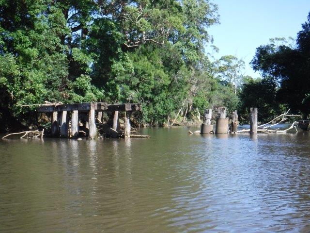 In the late 1800’s & early 1900’s timber from the turpentine tree was highly sought after for wharf & jetty piles because it resisted marine borers better than other timbers. It was also largely termite resistant and difficult to ignite & therefore a valuable commodity. Large stands of this timber were known to exist around the headwaters of Cedar Creek and they became the target of what became known as the ‘Turpentine Tramway’. In 1895 one Justin McSweeney established the Federal Timber Company & built a sawmill at Homedale (near Kew). In order to avoid the delays caused when bullock teams were unable to work after heavy rain, he had built a 6km tramway in the heart of the turpentine country. The rails were hardwood spiked onto locally split wooden sleepers; logs were loaded onto small rail wagons & hauled to the mill by a horse team. In 1897 the Australasian Timber Company bought the Kew mill but both it & the tramway were short lived as the company went into liquidation in 1898. The mill was sold & relocated to the Concord mill at Laurieton. The tramway ceased operation in the early 1900’s. This tramway was not without incident and on March 2 1899 a tragedy occurred when a 14 year old youth, who had been employed as a horse driver for only a week, was killed on the job. Rain had apparently made the rails slippery, and his trolley became unmanageable ( it was a practice that the horses were unharnessed & walked behind the trolleys on steep down hill sections & re harnessed on the flats). Instead of ‘abandoning ship’ as advised, he tried desperately to apply the trolley brakes harder but fell off and tragically was dragged under one of the wheels. He died from his injuries & is buried at Kendall cemetery.