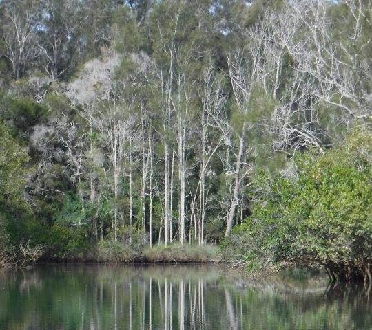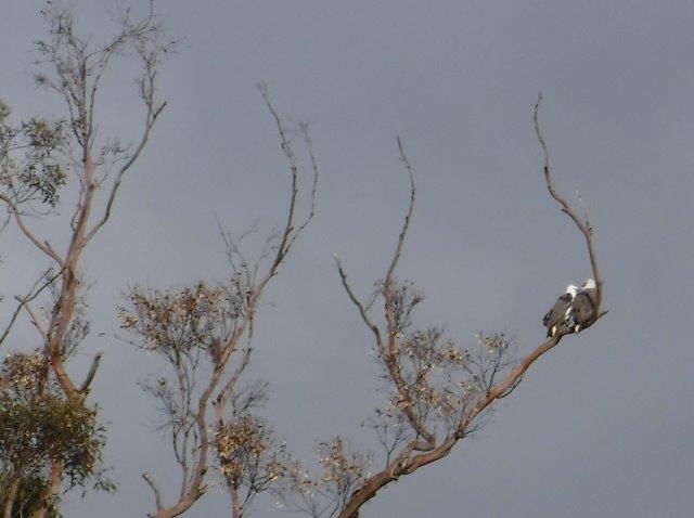 We paddled across the river, checked out what boats were at Birdons & then paddled up river, under the two bridges towards Sancrox enjoying the scenic panorama up towards Comboyne. The island just past the new bridge seems to have shrunk since the floods. Being right in the main flow of the river it would have been subject to a lot of pressure from the onslaught of the floodwaters. A beautiful sight along the way was two majestic white bellied sea eagles sitting side by side on a branch overhanging the water. I have never seen two sitting so close; usually they commandeer their own branch!!