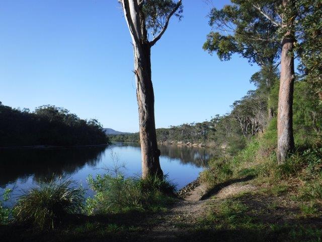 Queens Lake was calm for both crossings and Herons Creek was quiet & picturesque with that lovely sense of remoteness. Flanked on either side by towering trees, we caught glimpses of farms and houses, the vineyard and a few cleared stopping spots that looked fairly recent. It is a relaxing paddle with varied vegetation, rocky outcrops, vines, ferns, eye catching white tree trunks, reflections and vistas.