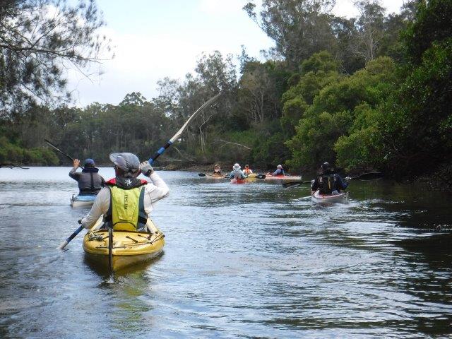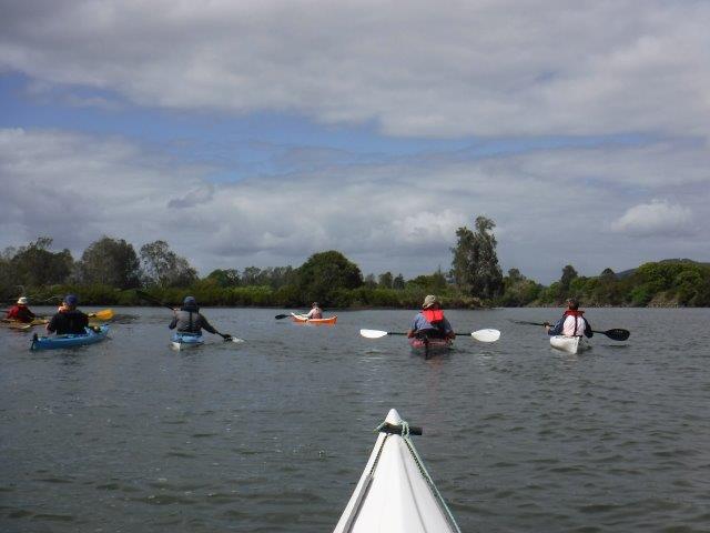 Twelve of us enjoyed perfect conditions for our paddle last Sunday in the Yarrahapinni Wetlands which are a part of what is collectively known as the Clybucca Historic Site. In October 2015 a group of eight of us joined over 50 paddlers connected with the Save Our Macleay River organisation on a guided tour by the National Parks & Wildlife of these rehabilitated wetlands. I noticed some real changes on Sunday, particularly with the growth and spread of mangroves and the presence of birdlife.